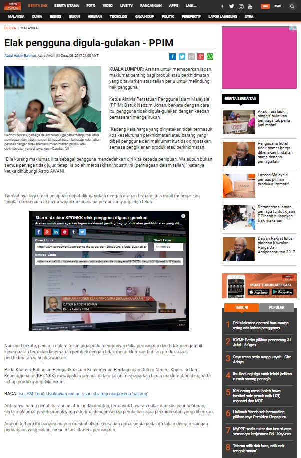 Nadzim berkata, peniaga dalam talian juga perlu mempunyai etika perniagaan dan tidak mengambil kesempatan terhadap kelemahan pembeli dengan tidak memaklumkan butiran produk atau perkhidmatan yang ditawarkan.