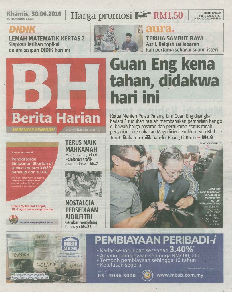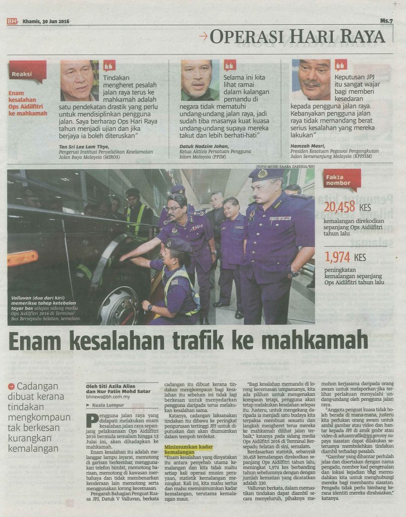 ENAM KESALAHAN TRAFIK KE MAHKAMAH – BERITA HARIAN – 30/6/16