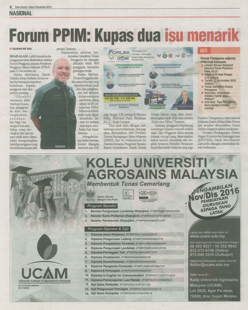 FORUM PPIM: KUPAS DUA ISU MENARIK – SINAR HARIAN – 9/11/2016