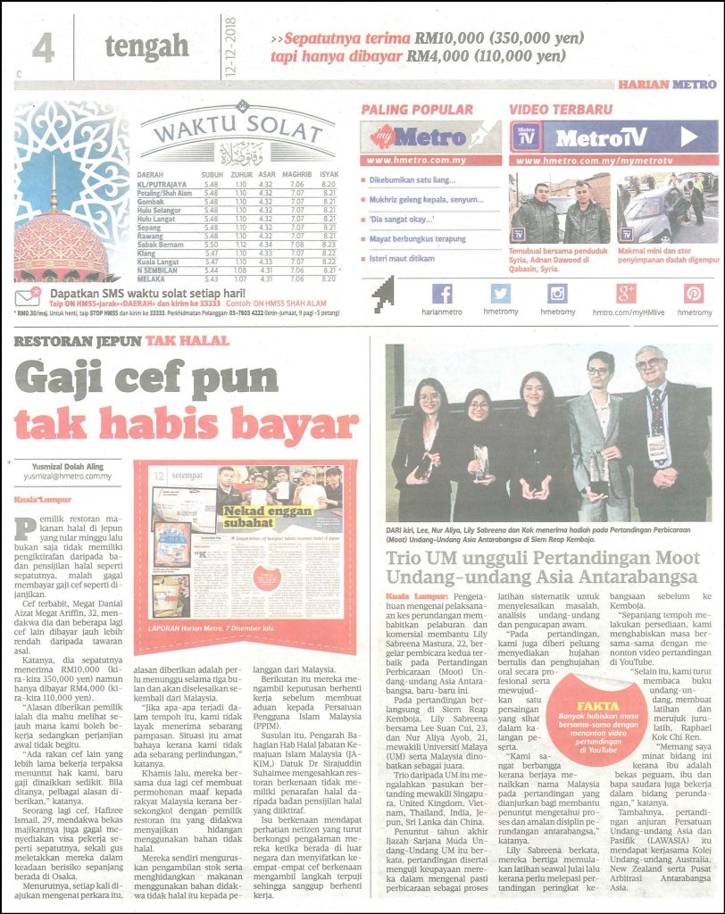 KUALA LUMPUR: Pemilik restoran makanan halal di Jepun yang tular minggu lalu bukan saja tidak memiliki pengiktirafan daripada badan pensijilan halal seperti sepatutnya, malah gagal membayar gaji cef seperti dijanjikan.