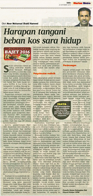 2898) HARIAN METRO – 21/10/2015 – HARAPAN TANGANI BEBAN KOS SARA HIDUP