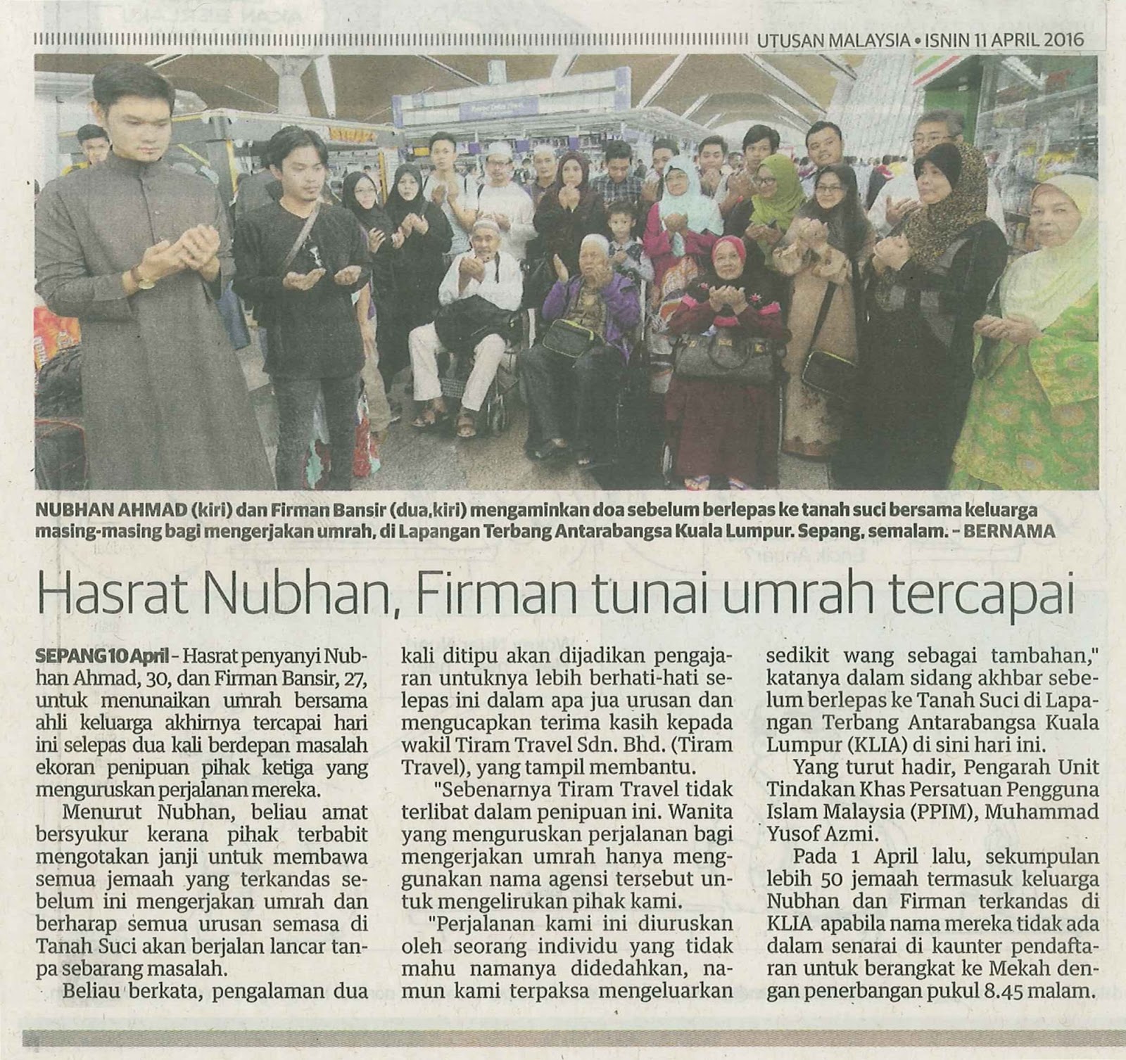 2670) HASRAT NUBHAN, FIRMAN TUNAI UMRAH TERCAPAI – UTUSAN MALAYSIA – 11/4/16