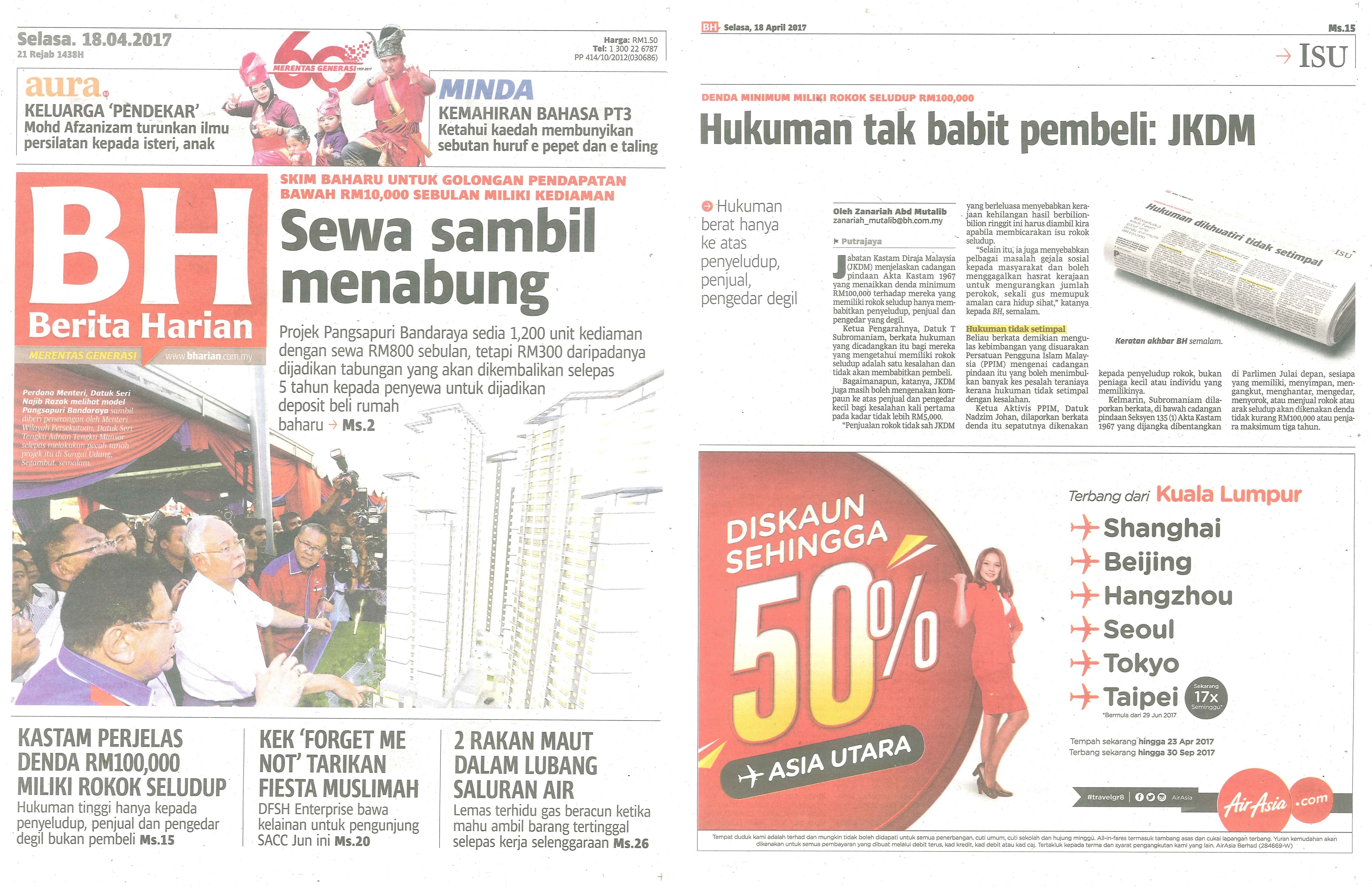 “Penjualan rokok tidak sah Kastam yang berleluasa menyebabkan kerajaan kehilangan hasil berbilion ringgit ini harus diambil kira apabila membicarakan isu rokok seludup.