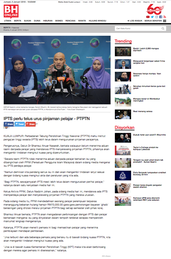 Artikel Penuh di https://www.bharian.com.my/berita/nasional/2018/01/371121/ipts-perlu-telus-urus-pinjaman-pelajar-ptptn