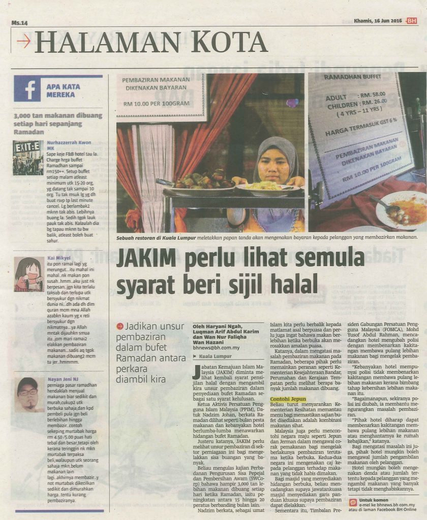 JAKIM PERLU LIHAT SEMULA SYARAT BERI SIJIL HALAL – BERITA HARIAN – 16/6/16