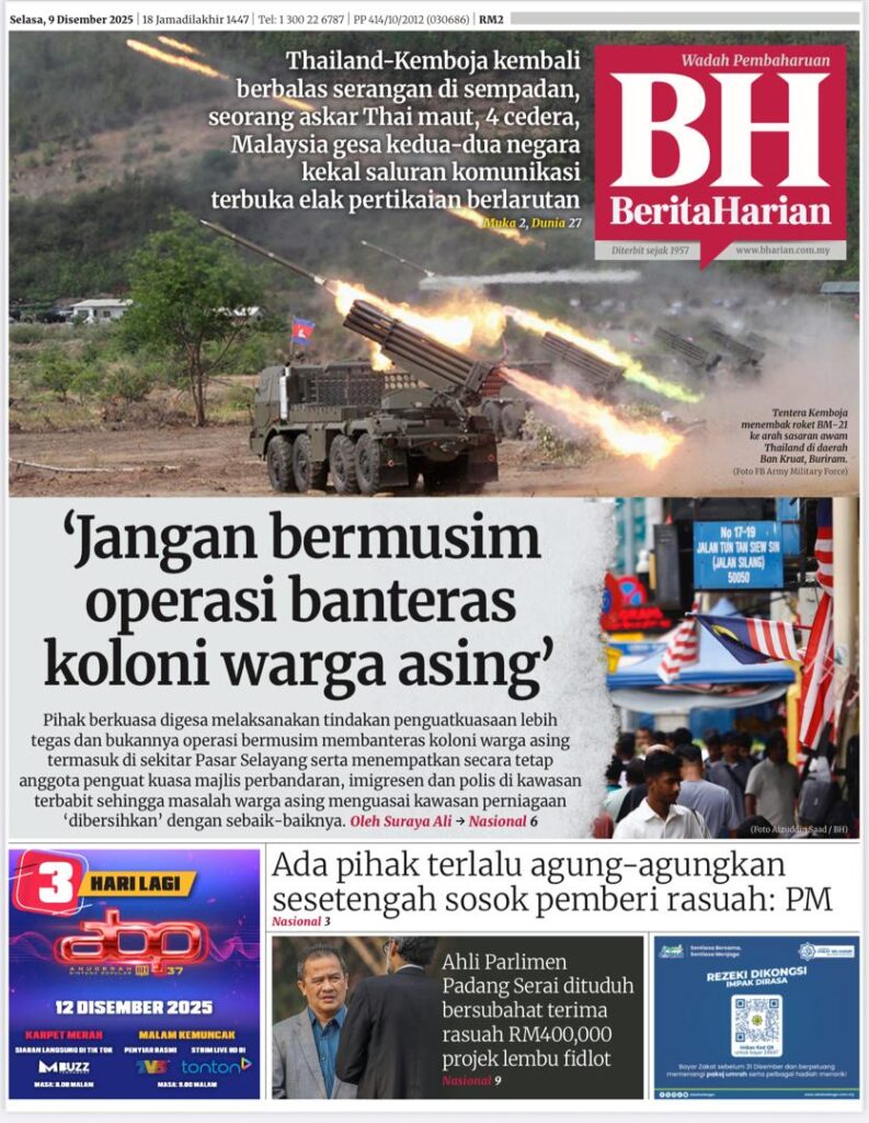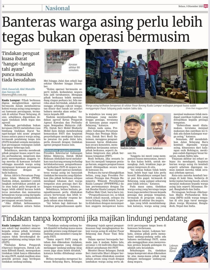 JANGAN BERMUSIM OPERASI BANTERAS KOLONI WARGA ASING’ – BERITA HARIAN – 09/12/2025