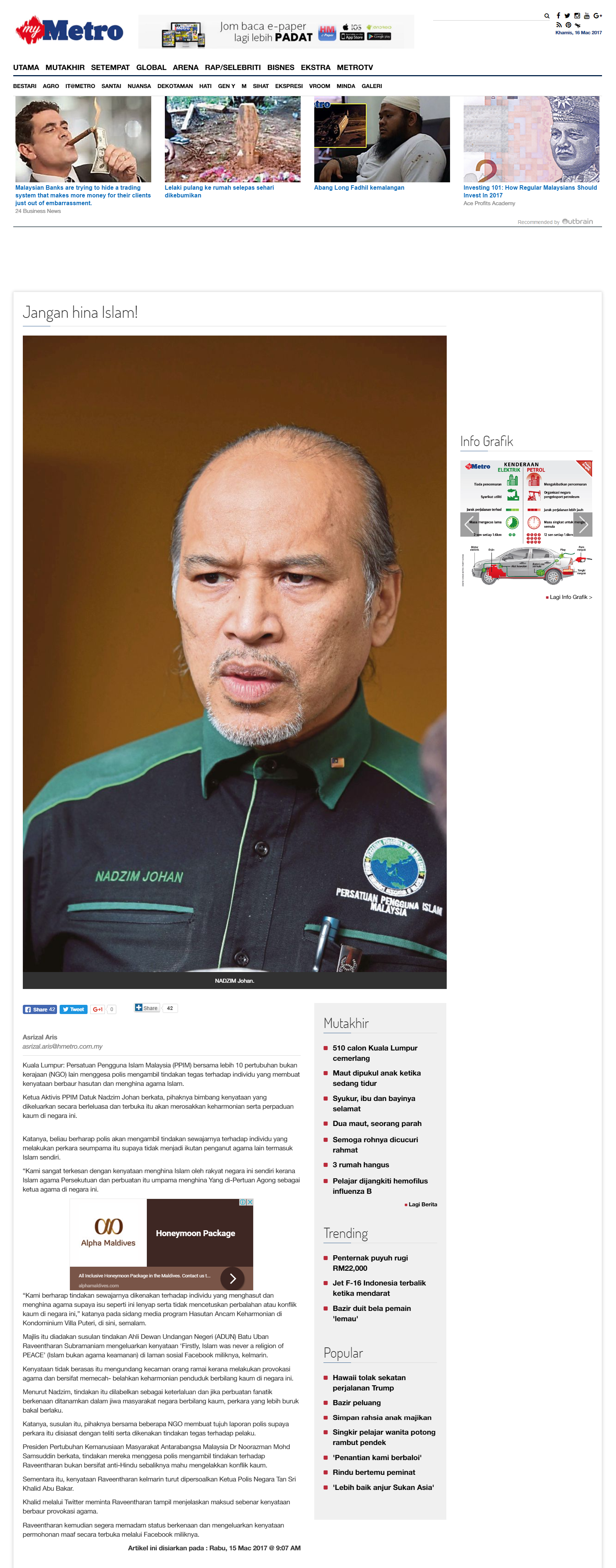 “Kami sangat terkesan dengan kenyataan menghina Islam oleh rakyat negara ini sendiri kerana Islam agama Persekutuan dan perbuatan itu umpama menghina Yang di-Pertuan Agong sebagai ketua agama di negara ini.