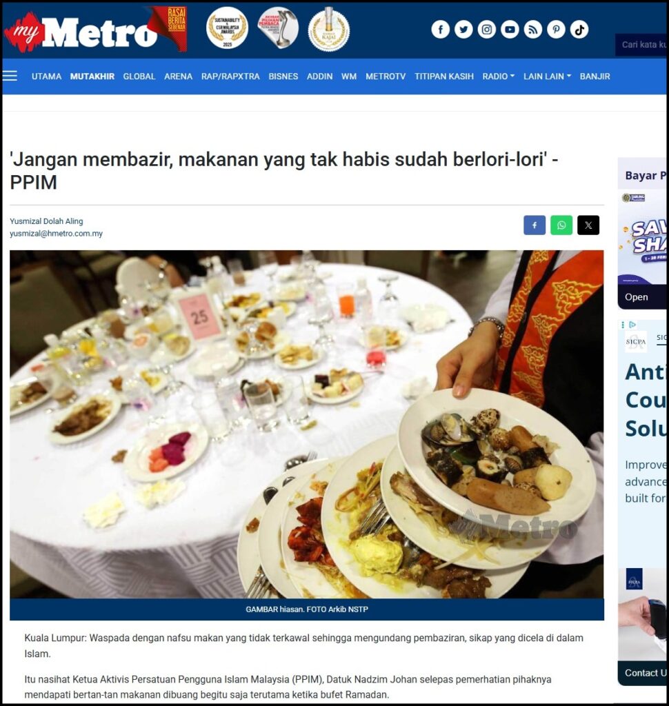 ‘JANGAN MEMBAZIR, MAKANAN YANG TAK HABIS SUDAH BERLORI-LORI’ – PPIM – HARIAN METRO – 21/02/2026