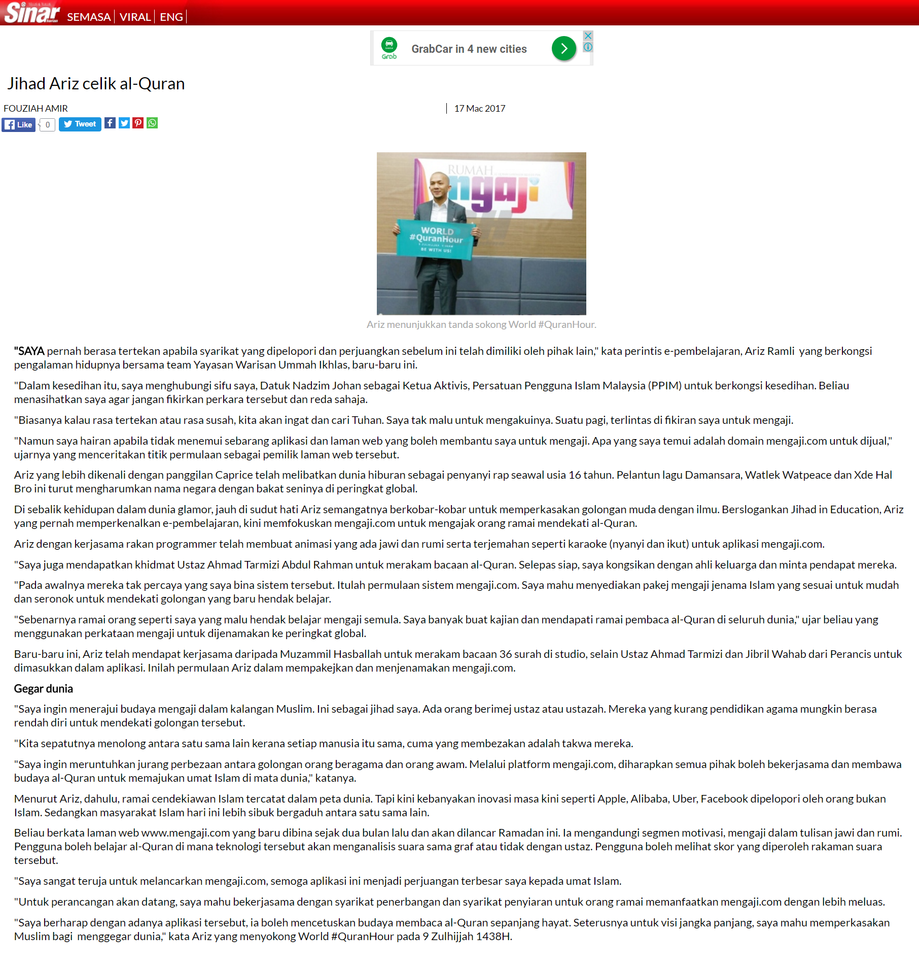“Saya sangat teruja untuk melancarkan mengaji.com, semoga aplikasi ini menjadi perjuangan terbesar saya kepada umat Islam.