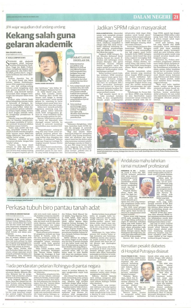 KEMATIAN PESAKIT DIABETES DI HOSPITAL PUTRAJAYA DISIASAT – UTUSAN MALAYSIA – 16/10/2016