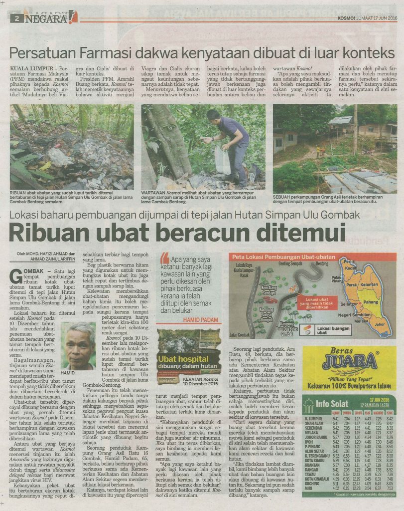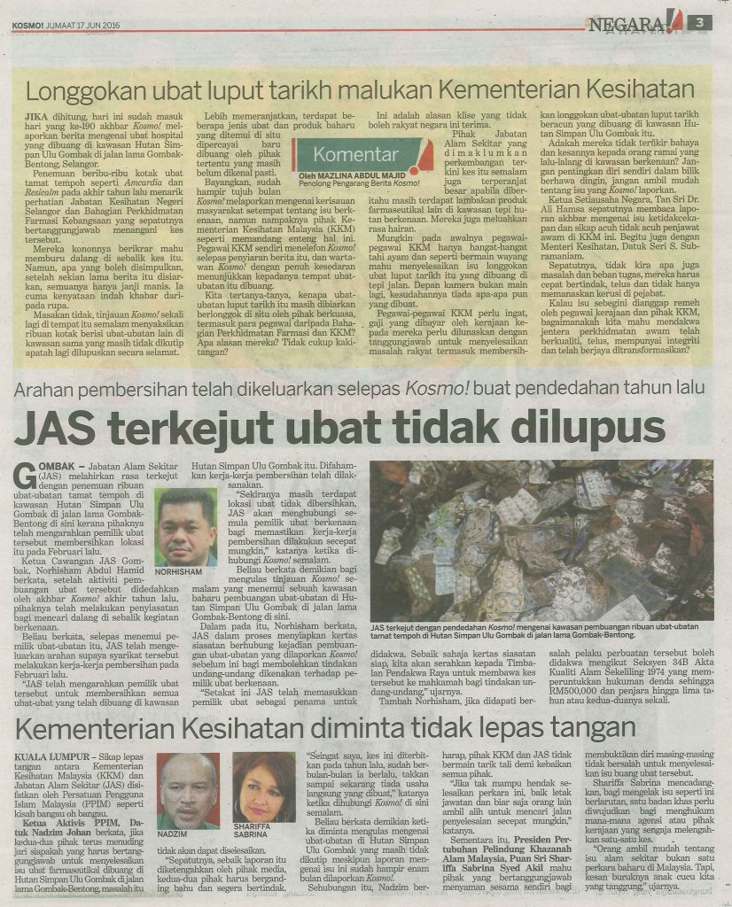 KEMENTERIAN KESIHATAN DIMINTA TIDAK LEPAS TANGAN – KOSMO – 17/6/16