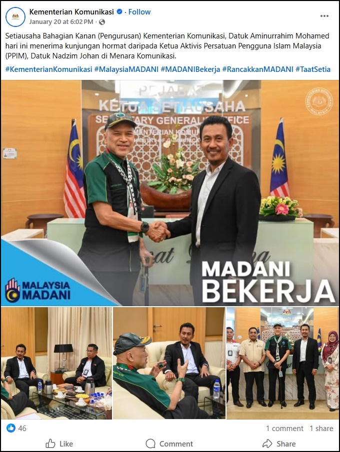 KEMENTERIAN KOMUNIKASI TERIMA KUNJUNGAN HORMAT KETUA AKTIVIS PPIM