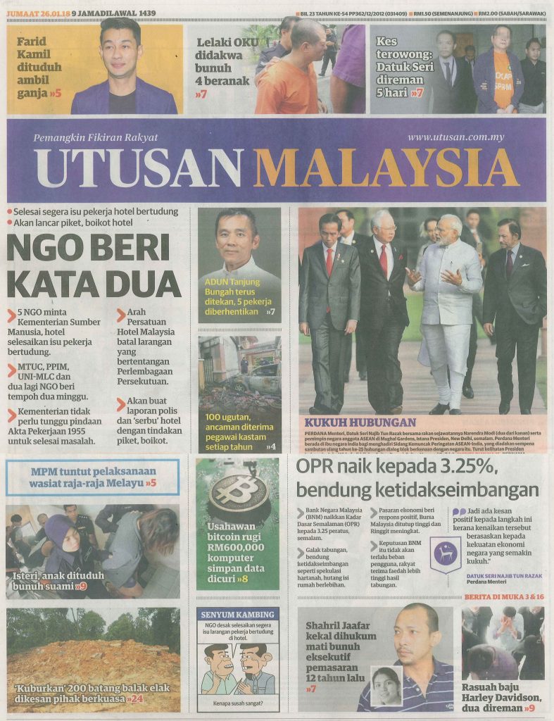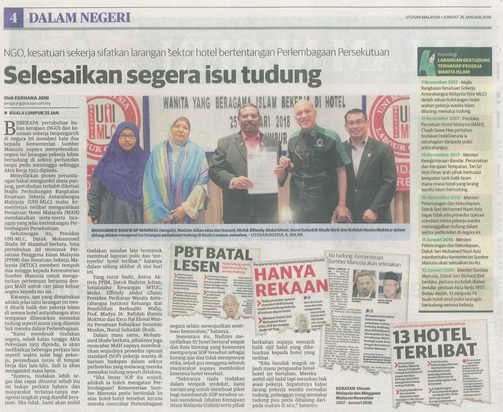 Menyifatkan proses perundangan bakal mengambil masa panjang, pertubuhan terbabit diketuai Majlis Perhubungan Rangkaian Kesatuan Sekerja Antarabangsa Malaysia (UNI-MLC) mahu kementerian terlibat mengarahkan Persatuan Hotel Malaysia (MAH) membatalkan serta-merta larangan yang jelas bertentangan Perlembagaan Persekutuan.