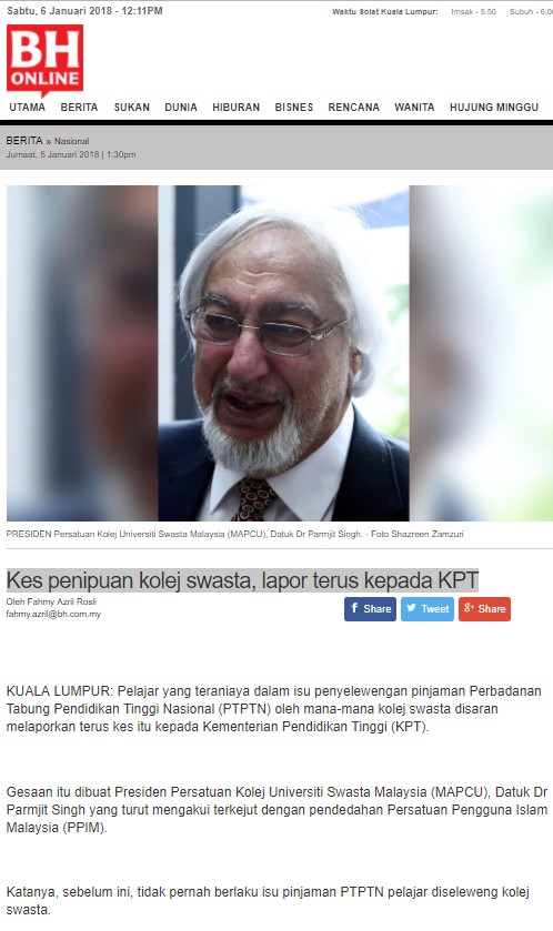 Gesaan itu dibuat Presiden Persatuan Kolej Universiti Swasta Malaysia (MAPCU), Datuk Dr Parmjit Singh yang turut mengakui terkejut dengan pendedahan Persatuan Pengguna Islam Malaysia (PPIM).
