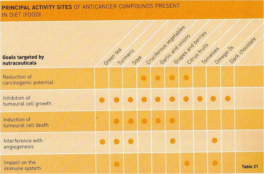 A book written by Professor Richard Beliveau and Dr Denis Ginger on “foods to fight cancer” have the following findings: