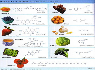 Anticancer compound present in fruits and vegetables, phytochemicals block carcinogen action, block the promotion and progression of cancer cells