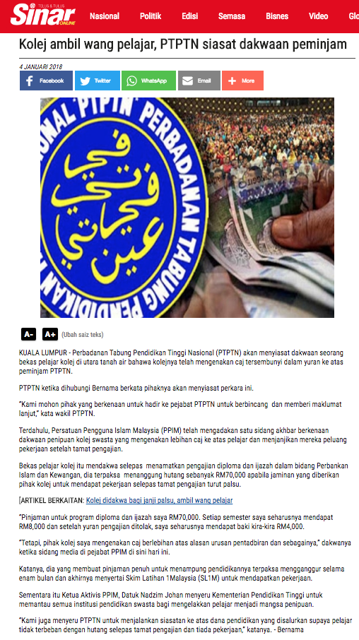 Artikel Penuh di http://www.sinarharian.com.my/semasa/kolej-ambil-wang-pelajar-ptptn-siasat-dakwaan-peminjam-1.779004