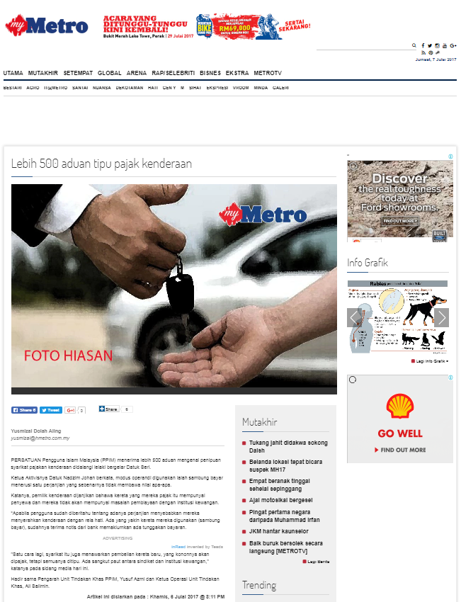 PERSATUAN Pengguna Islam Malaysia (PPIM) menerima lebih 500 aduan mengenai penipuan syarikat pajakan kenderaan didalangi lelaki bergelar Datuk Seri.