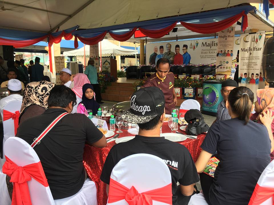 Sedang berlangsungnya Majlis Iftar dan Penyampaian Sumbangan Hari Raya Aidilfitri anjuran Al-Madrasathul Faridiyah bersama Persatuan Pengguna Islam Malaysia (PPIM) yang diadakan di Sekolah Kebangsaan Taman Seri Rampai, Setapak.
