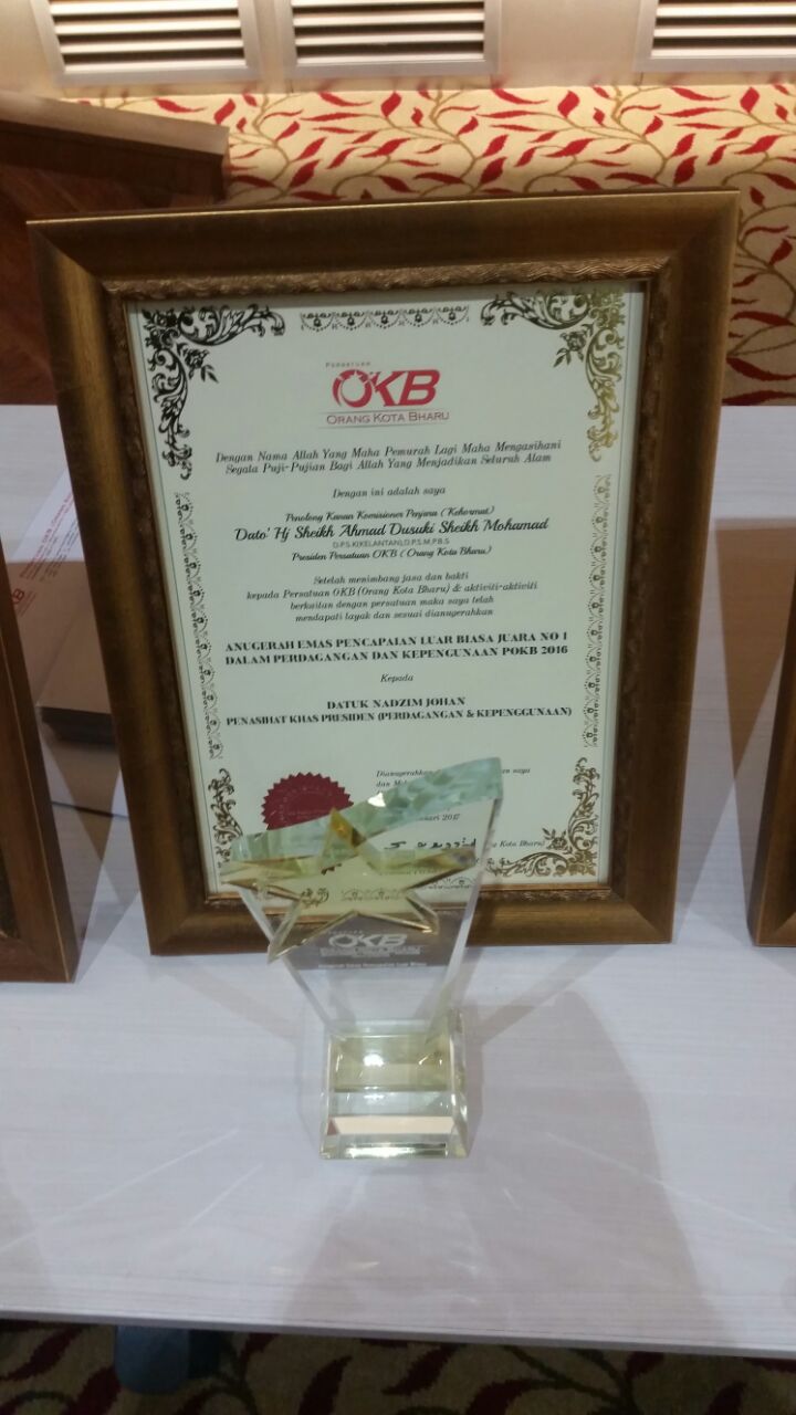 Pelbagai anugerah yang diberikan oleh OKB di dalam majlis ini dan tidak terlepas juga Anugerah Emas Pencapaian Luar Biasa Juara No 1 Dalam Perdagangan Dan Kepenggunaan POKB 2016 yang diraih oleh Datuk Nadzim Johan Penasihat Khas Presiden (Perdagangan dan Kepenggunaan) / Ketua Aktivis Persatuan Pengguna Islam Malaysia (PPIM)