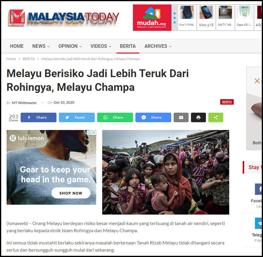 MELAYU BERISIKO JADI LEBIH TERUK DARI ROHINGYA, MELAYU CHAMPA