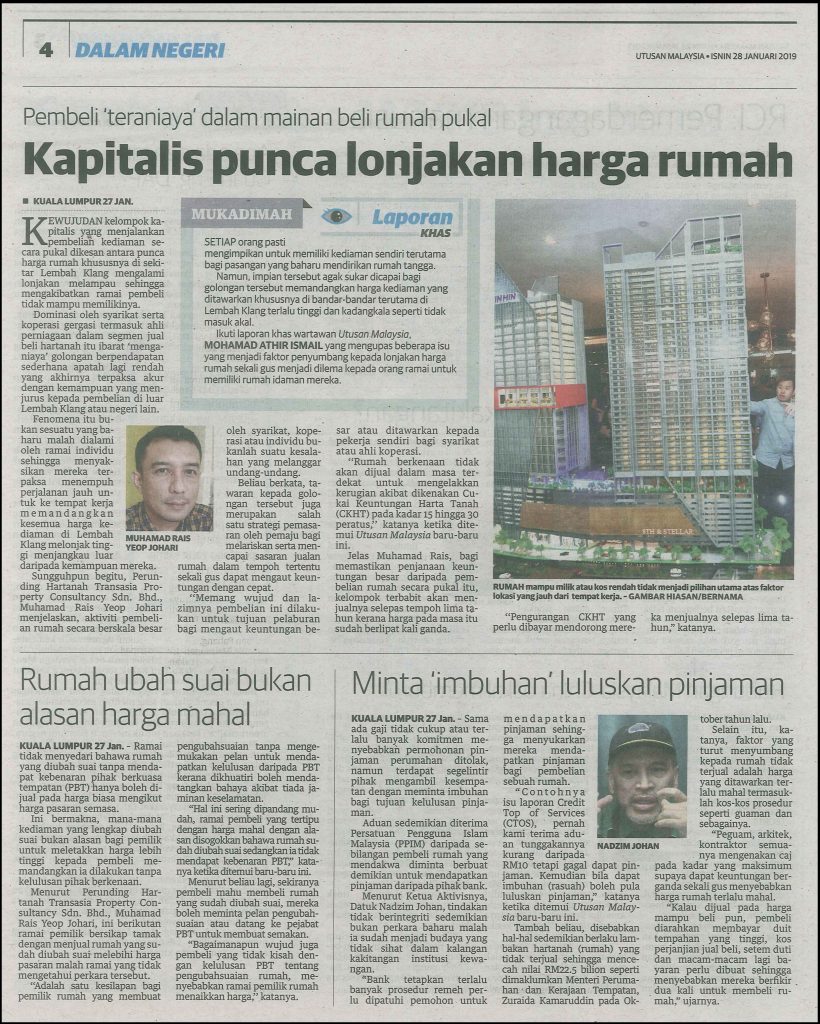 Tambah beliau, disebabkan hal-hal sedemikian berlaku lambakan hartanah (rumah) yang tidak terjual sehingga mencecah nilai RM22.5 bilion seperti dimaklumkan Menteri Perumahan dan Kerajaan Tempatan, Zuraida Kamaruddin pada Oktober tahun lalu.