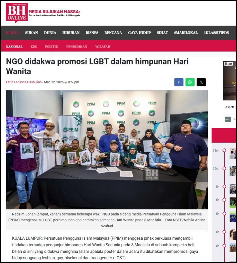 NGO DIDAKWA PROMOSI LGBT DALAM HIMPUNAN HARI WANITA – BERITA HARIAN – 12/03/2026