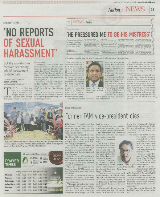 ‘NO REPORTS OF SEXUAL HARASSMENT’ – NEW STRAITS TIMES – 10/6/2017