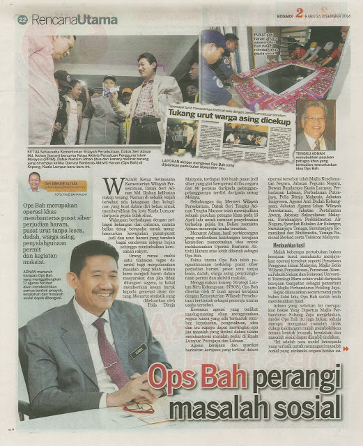 Untuk pengetahuan umum, operasi yang digerakkan dengan kerjasama 17 agensi kerajaan ini menfokuskan penguatkuasaan terhadap pusat siber perjudian haram, pusat urut tanpa lesen, dadah, warga asing, penyalahgunaan permit dan aktiviti maksiat.