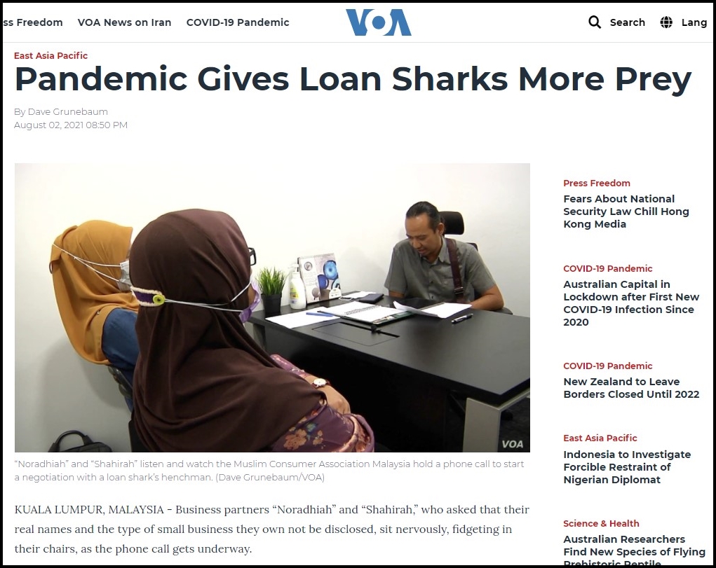 The Muslim Consumer Association Malaysia, a nongovernment organization, said for the past year it has been getting about 25 new cases each day of loan shark victims asking for help. That’s a 30% increase compared with before the pandemic.
