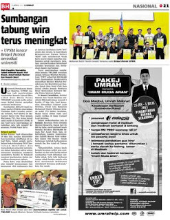 Sumbangan RM5,050 hasil kutipan warga UPNM itu diserahkan Timbalan Naib Canselor universiti terbabit, Prof Madya Dr Mohamed Fadzil Che Wan kepada Wartawan TV3, Nur Anisa Ismail pada majlis di kampusUPNM, di sini yang turut menyaksikan penubuhan satu lagi inisiatif keamanan, Projek Peace Bayu.