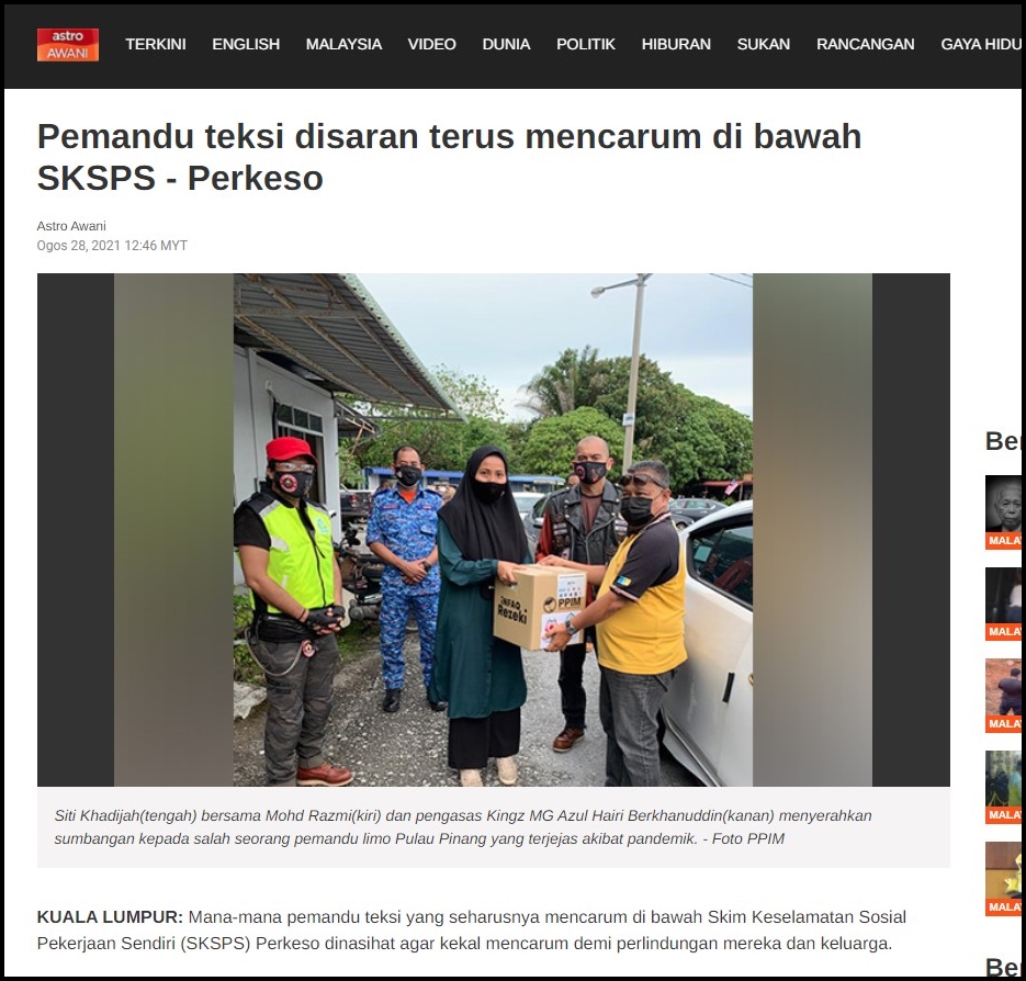 “Dalam misi ini, kita memberi sumbangan kepada lebih 400 pemandu teksi dan limo yang rata-rata terkesan dengan impak pandemik.
