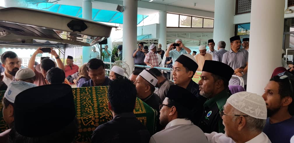 KAPSYEN GAMBAR: Penasihat PPIM, Datuk Jawahar Ali (berbaju hijau hitam) turut sama mengusung jenazah Elyas untuk dibawa dan dikebumikan di Tanah Perkuburan Islam DBKL di Kuala Lumpur pagi ini. – UNIT MEDIA PPIM