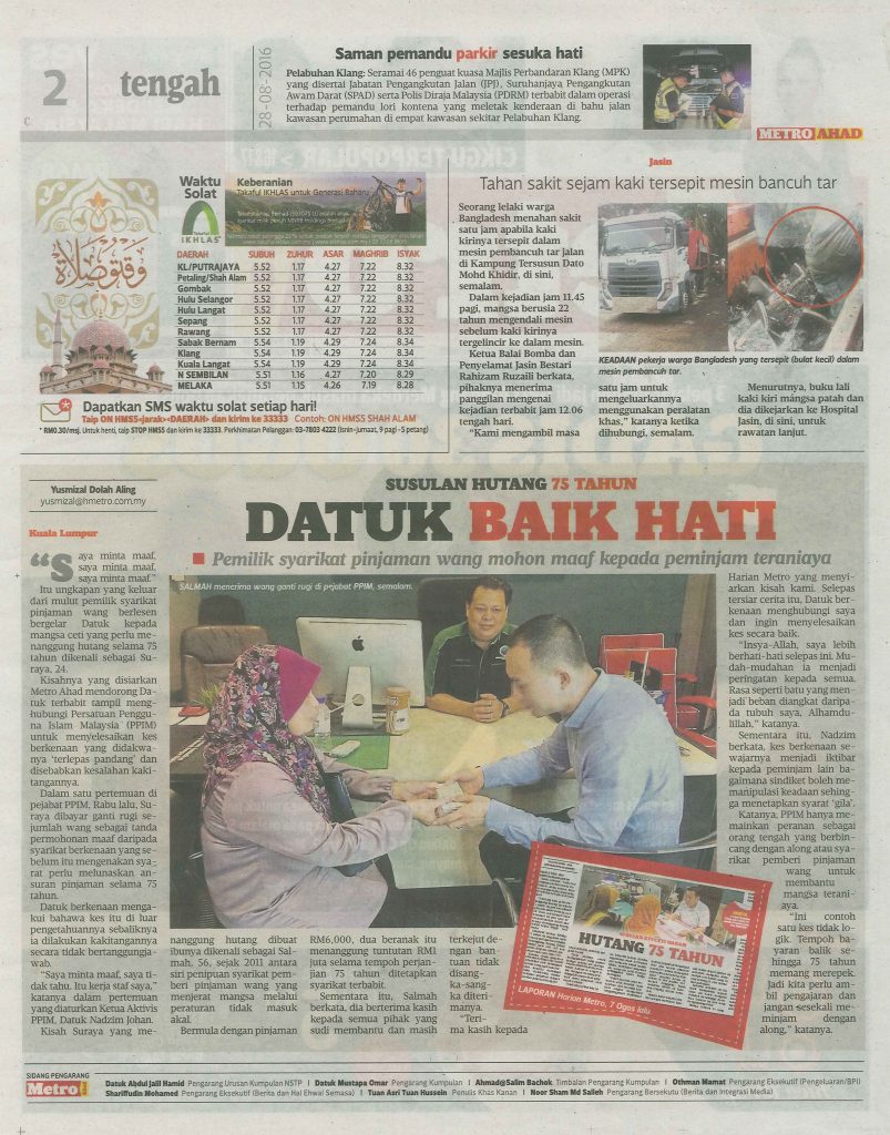 PEMILIK SYARIKAT PINJAMAN WANG MOHON MAAF KEPADA PEMINJAM TERANIAYA – HARIAN METRO – 28/9/16