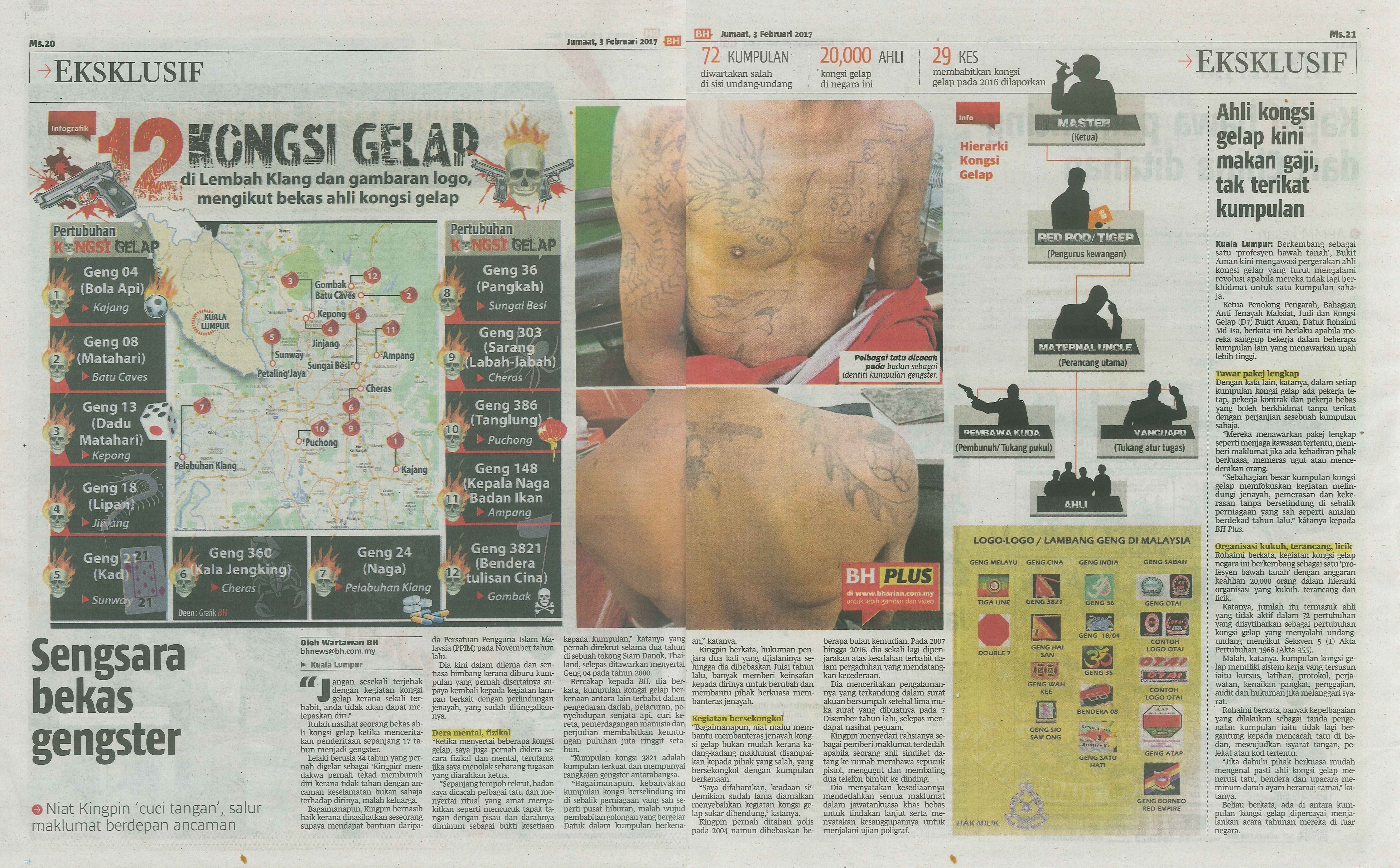 “Sebahagian besar kumpulan kongsi gelap memfokuskan kegiatan melindungi jenayah, pemerasan dan kekerasan tanpa berselindung di sebalik perniagaan sah seperti amalan berdekad tahun lalu,” katanya kepada BH Plus.