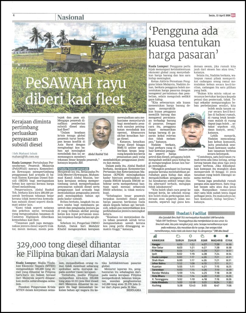 ‘PENGGUNA ADA KUASA TENTUKAN HARGA PASARAN’ – BERITA HARIAN – 13/04/2026