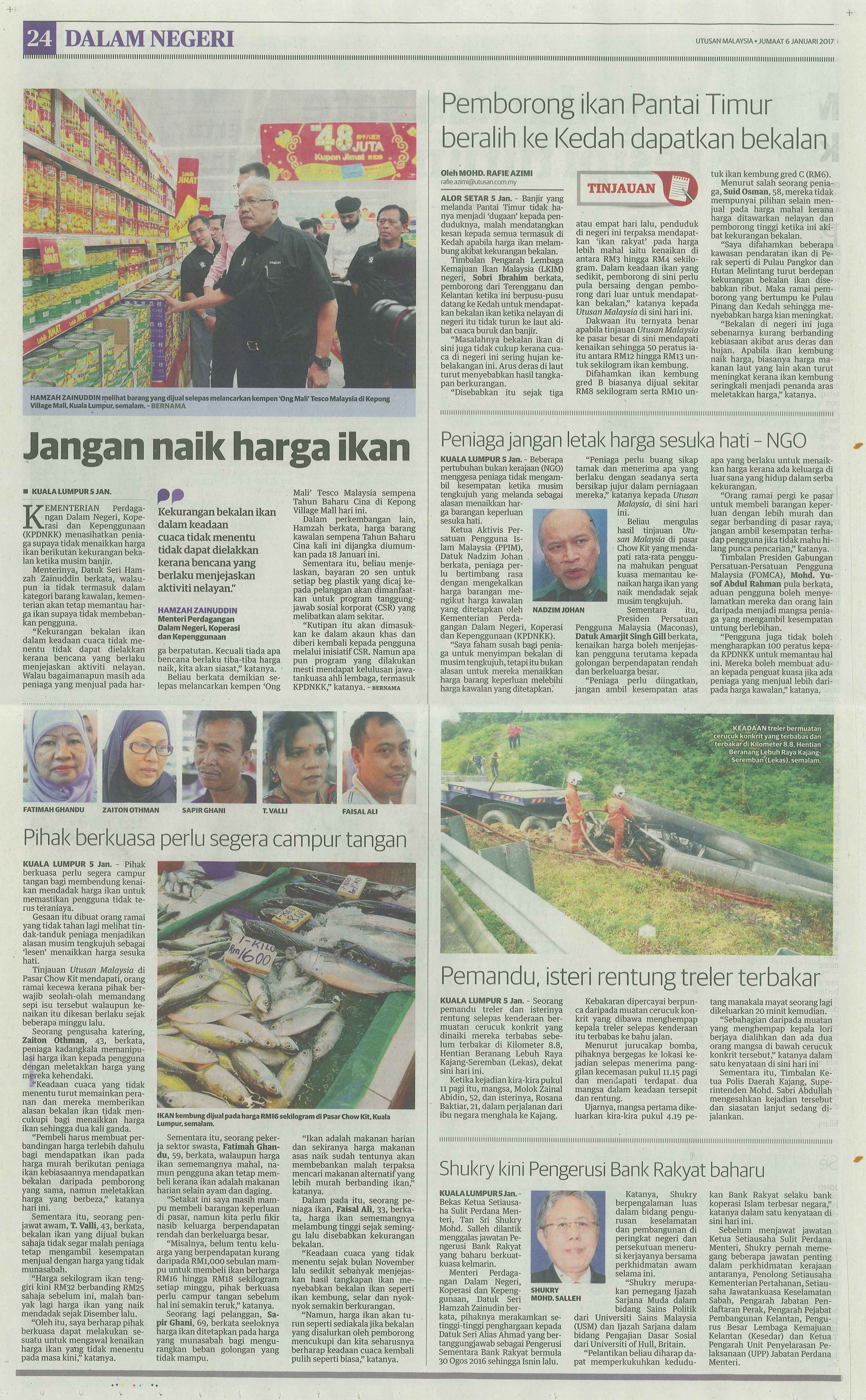 Beliau mengulas hasil tinjauan Utusan Malaysia di pasar Chow Kit yang mendapati rata-rata pengguna mahukan penguatkuasa memantau kenaikkan harga ikan yang naik mendadak sejak musim tengkujuh.