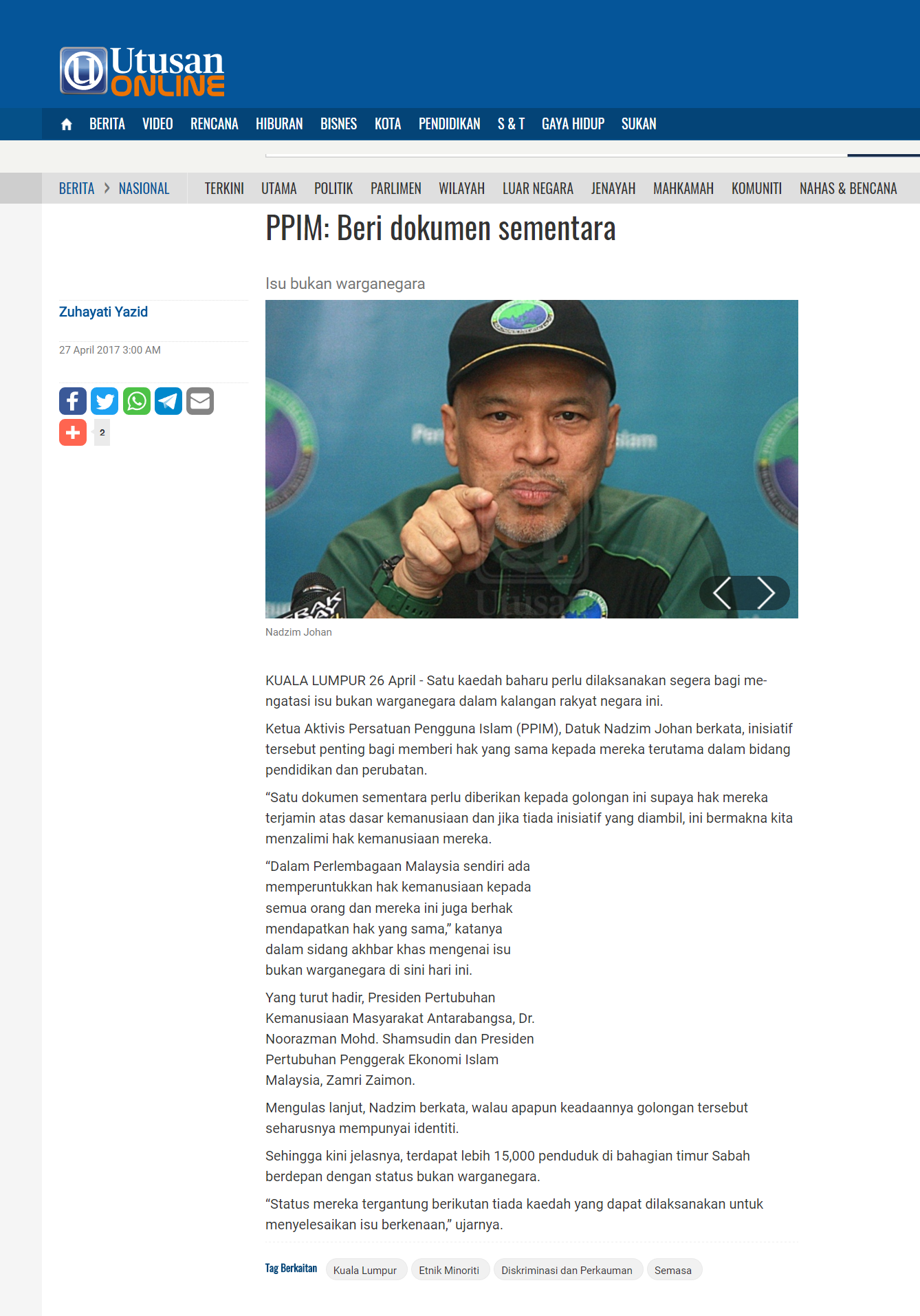 “Satu dokumen sementara perlu diberikan kepada golongan ini supaya hak mereka terjamin atas dasar kemanusiaan dan jika tiada inisiatif yang diambil, ini bermakna kita menzalimi hak kemanusiaan mereka.