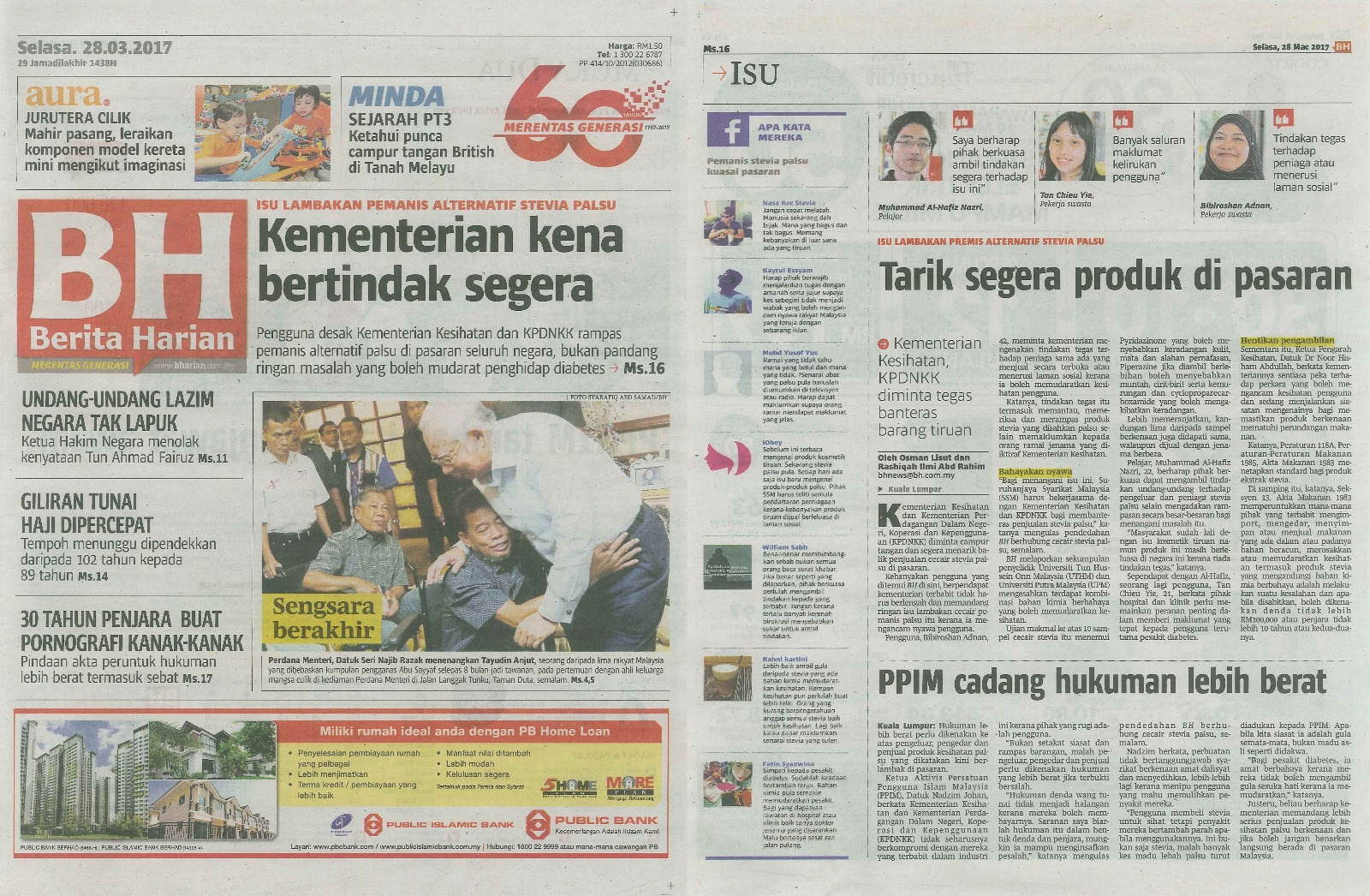 ” Hukuman denda wang tunai tidak menjadi halangan kerana mereka boleh membayarnya. Saranan saya biarlah hukuman itu dalam bentuk denda dan penjara, mungkin ia mampu menginsafkan pesalah,” katanya mengulas pendedahan BH berhubung cecair Stevia palsu, semalam.