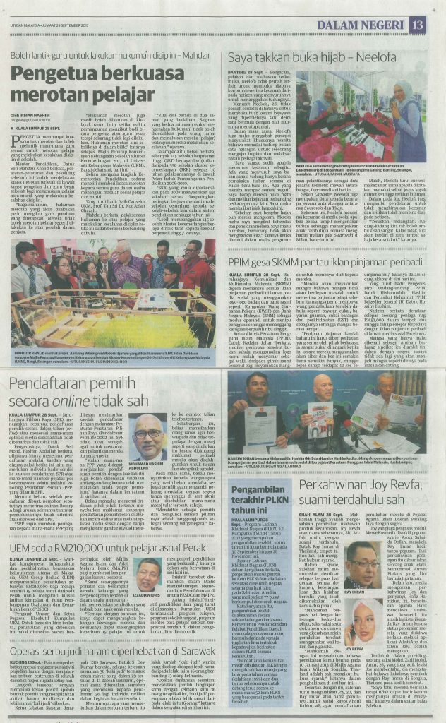 KUALA LUMPUR 28 Sept. -Suruhanjaya Komunikasi dan Multimedia Malaysia (SKMM) digesa memantau semua iklan pinjaman peribadi di laman media sosial yang menggunakan logo-logo badan dan bank rasmi seperti Kumpulan Wang Simpanan Pekerja (KWSP) dan Bank Negara Malaysia (BNM) sebagai modus operandi untuk menipu pengguna sehingga menanggung kerugian berpuluh ribu ringgit.