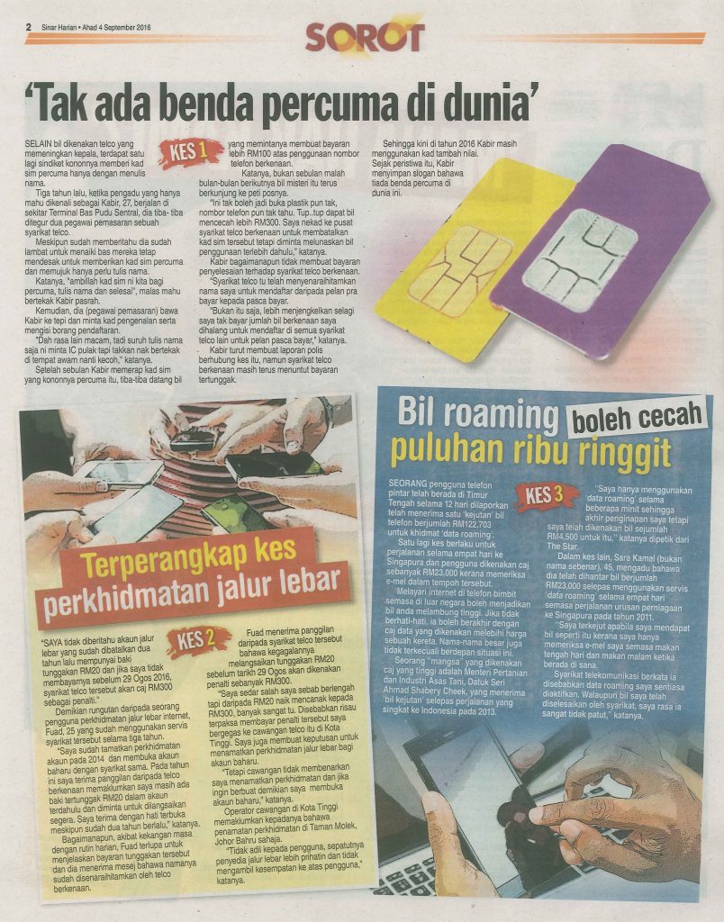 Ini belum lagi mengenai mutu perkhidmatan yang tidak konsisten. Walaupun pengguna tidak berjaya menghubungi seseorang dan talian terputus, namun caj tetap dimasukkan dalam bil!