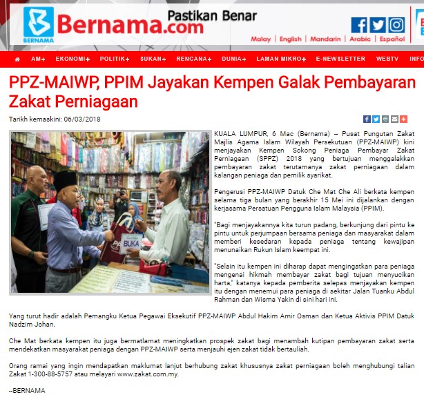 PPZ-MAIWP, PPIM JAYAKAN KEMPEN GALAK PEMBAYARAN ZAKAT PERNIAGAAN