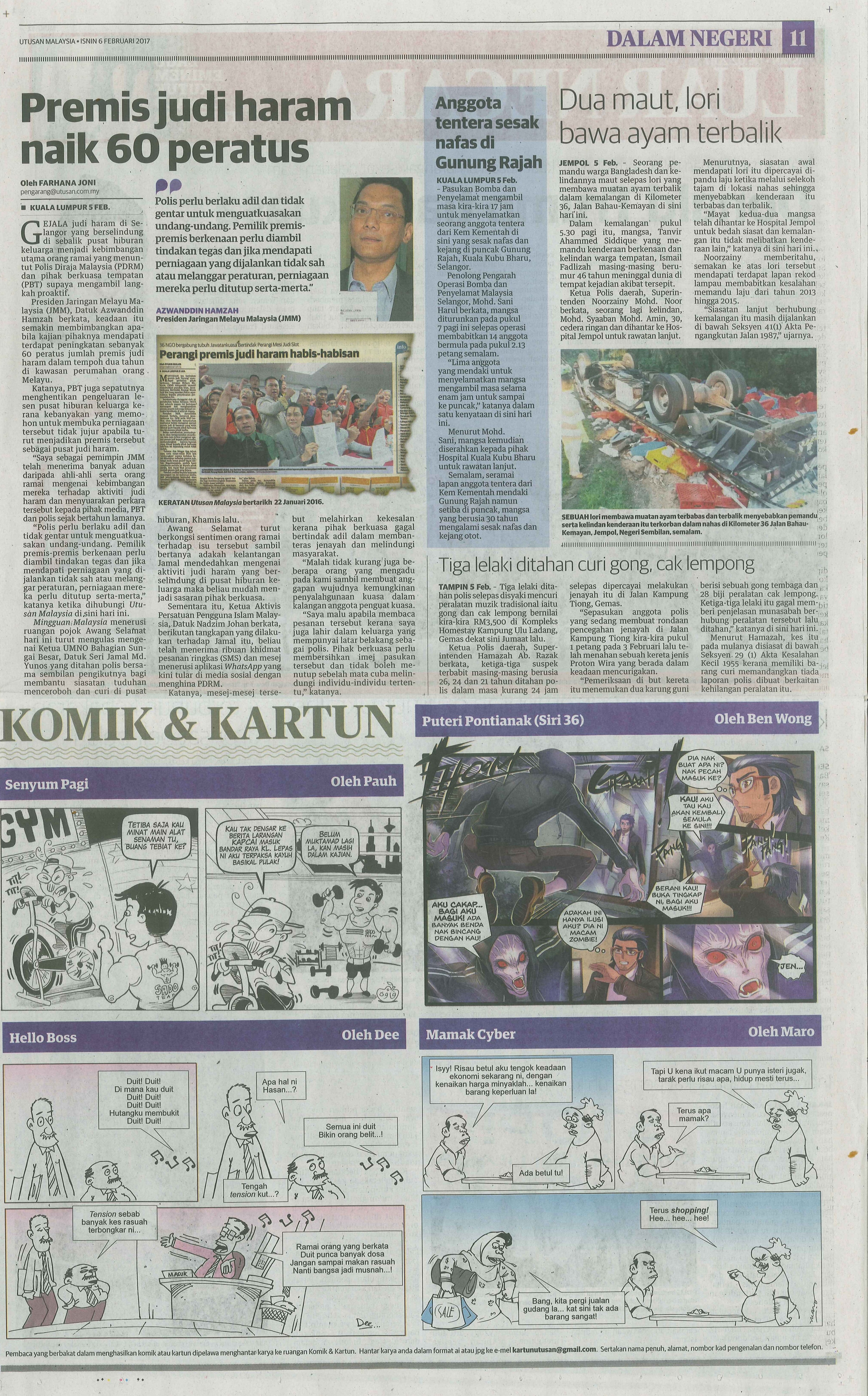 Mingguan Malaysia menerusi ruangan pojok Awang Selamat hari ini turut mengulas mengenai Ketua UMNO Bahagian Sungai Besar, Datuk Seri Jamal Md. Yunos yang ditahan polis bersama sembilan pengikutnya bagi membantu siasatan tuduhan menceroboh dan curi di pusat hiburan, Khamis lalu.