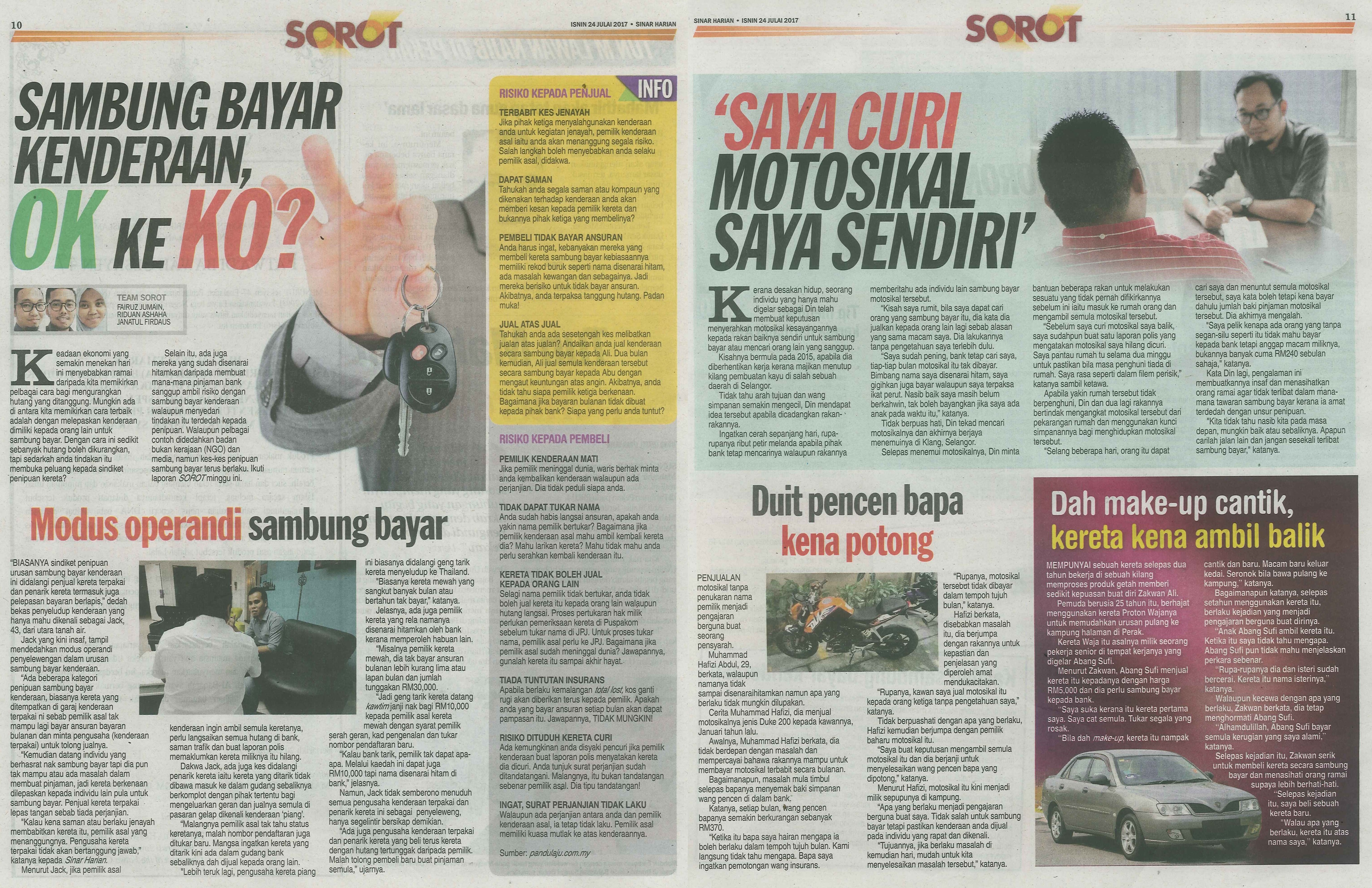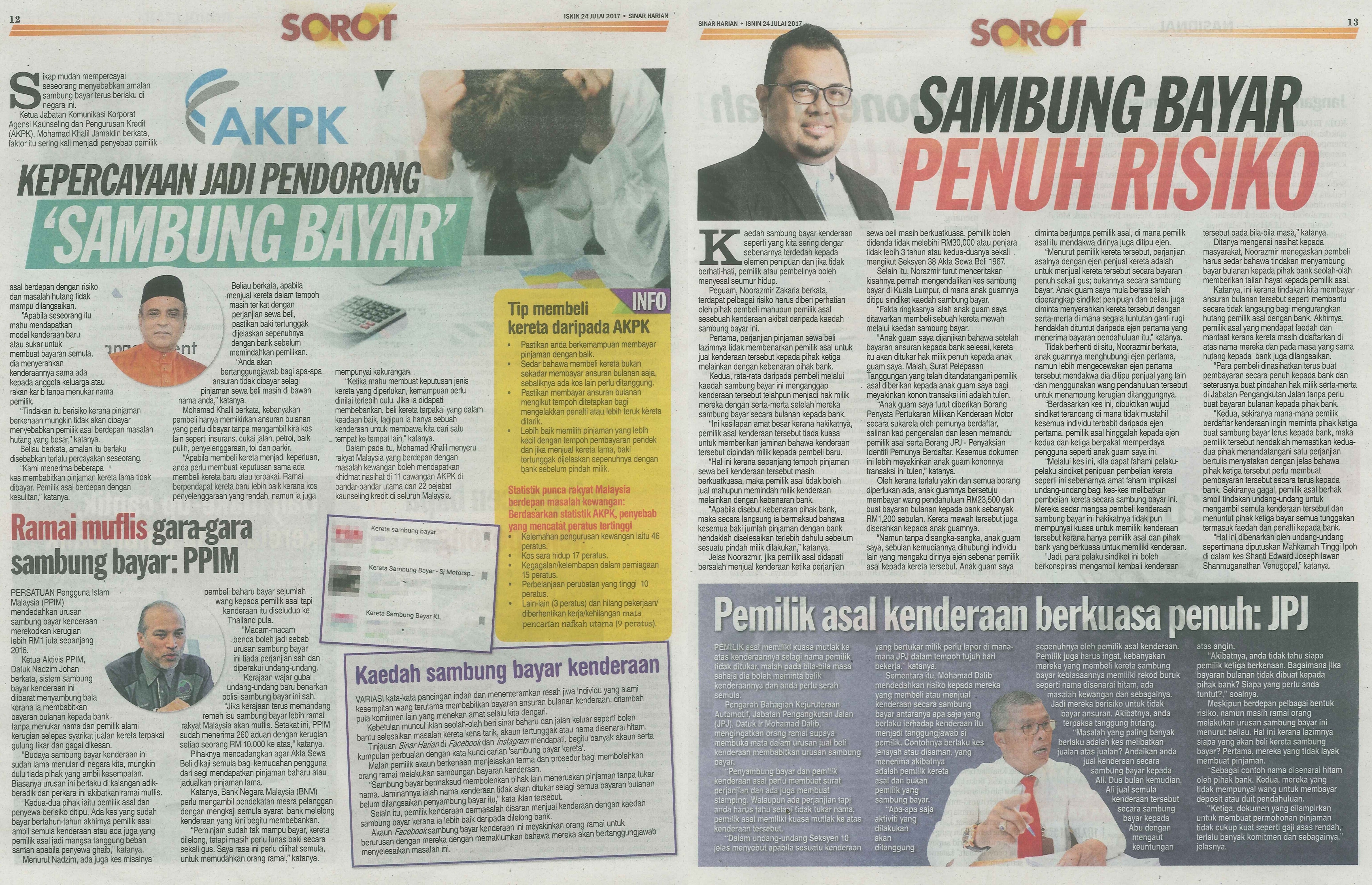 “Budaya sambung bayar kenderaan ini sudah lama menular di negara kita, mungkin dulu tiada pihak yang ambil kesempatan. Biasanya urusan ini berlaku di kalangan adik-beradik dan perkara ini akibatkan ramai muflis.