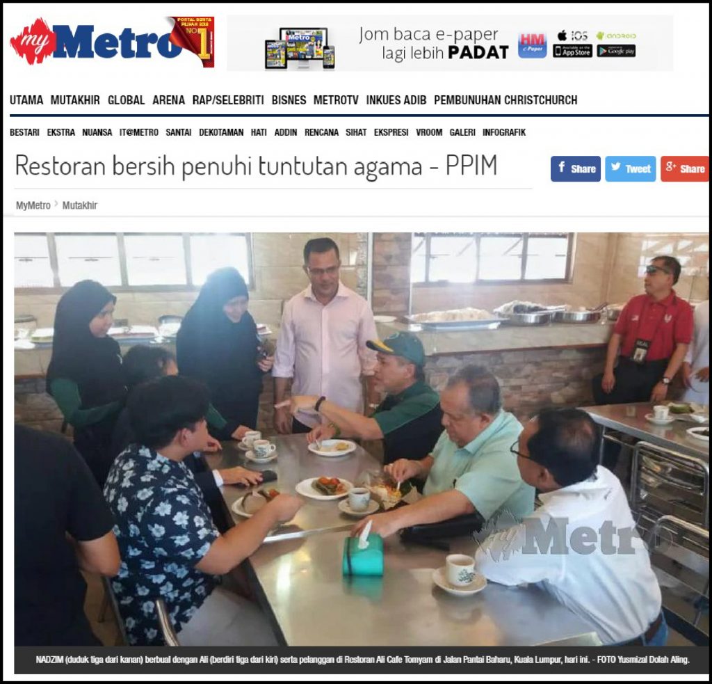 RESTORAN BERSIH PENUHI TUNTUTAN AGAMA – HARIAN METRO – 22/3/19