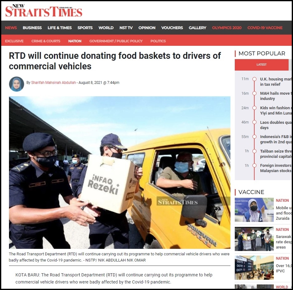 “The department was really concerned about the welfare of commercial vehicles drivers such as bus, lorry and rental car drivers. They have been affected due to the pandemic.