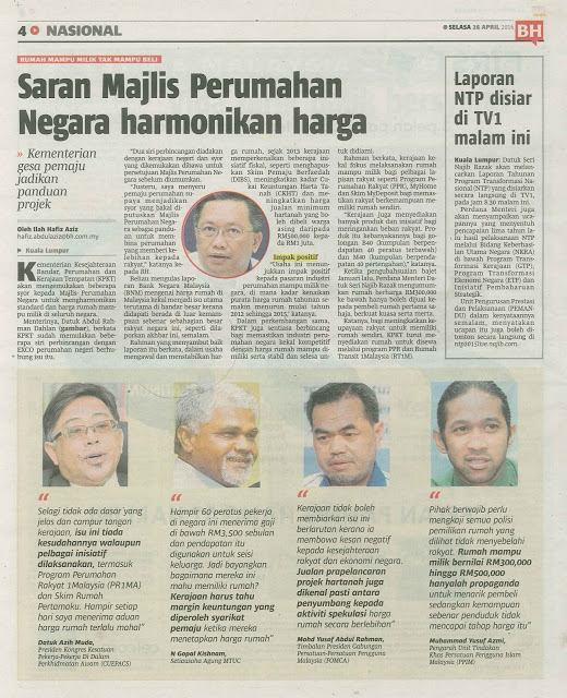 2703) SARAN MAJLIS PERUMAHAN NEGARA HARMONIKAN HARGA – BERITA HARIAN – 26/4/16