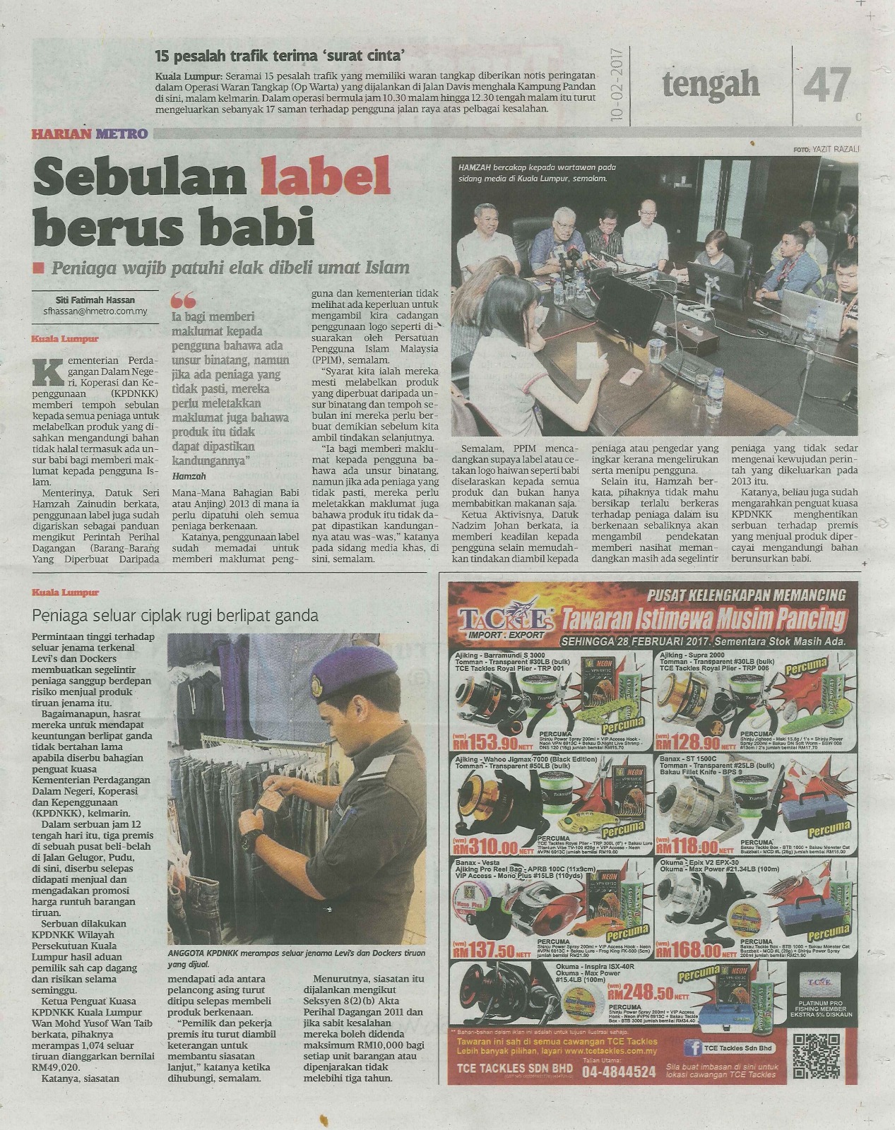 Menterinya, Datuk Seri Hamzah Zainudin berkata, penggunaan label juga sudah digariskan sebagai panduan mengikut Perintah Perihal Dagangan (Barang-Barang Yang Diperbuat Daripada Mana-Mana Bahagian Babi atau Anjing) 2013 di mana ia perlu dipatuhi oleh semua peniaga berkenaan.