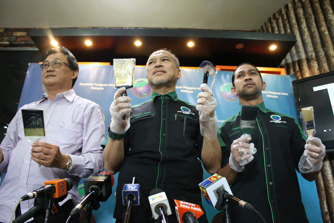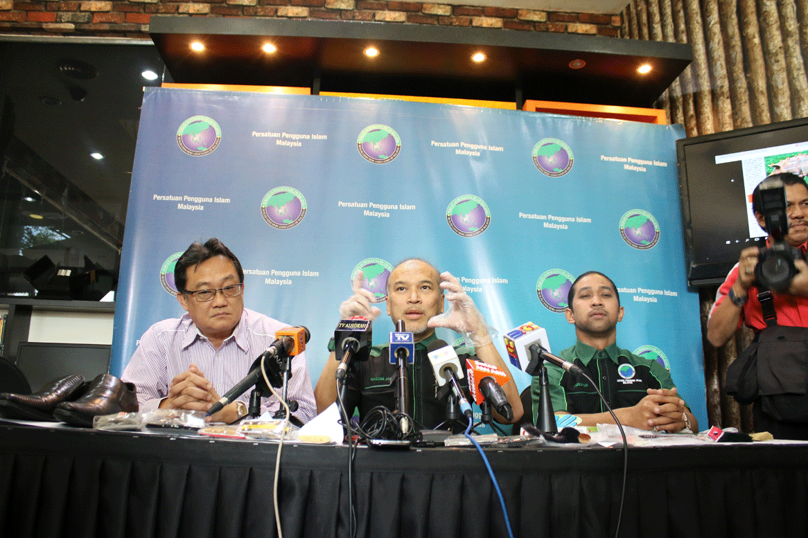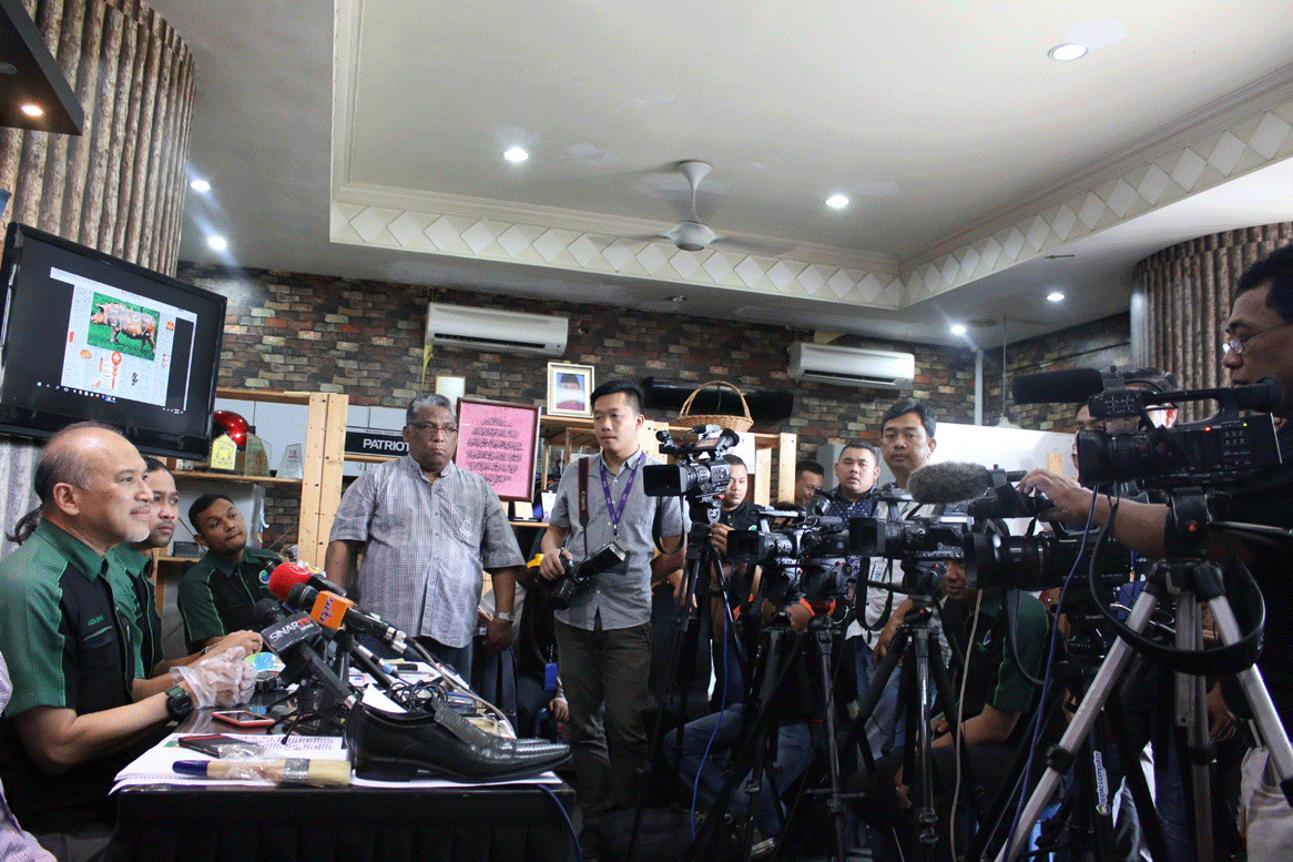 Dato’ Nadzim Johan menunjukkan pecahan bahagian anggota badan babi dan kegunaannya kepada media