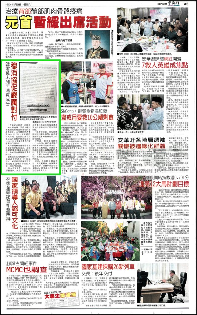 SNEK KOREA TIDAK SENARAIKAN RAMUAN TIDAK HALAL, PPIM GESA TINDAKAN TEGAS – CHINA PRESS – 28/02/2026